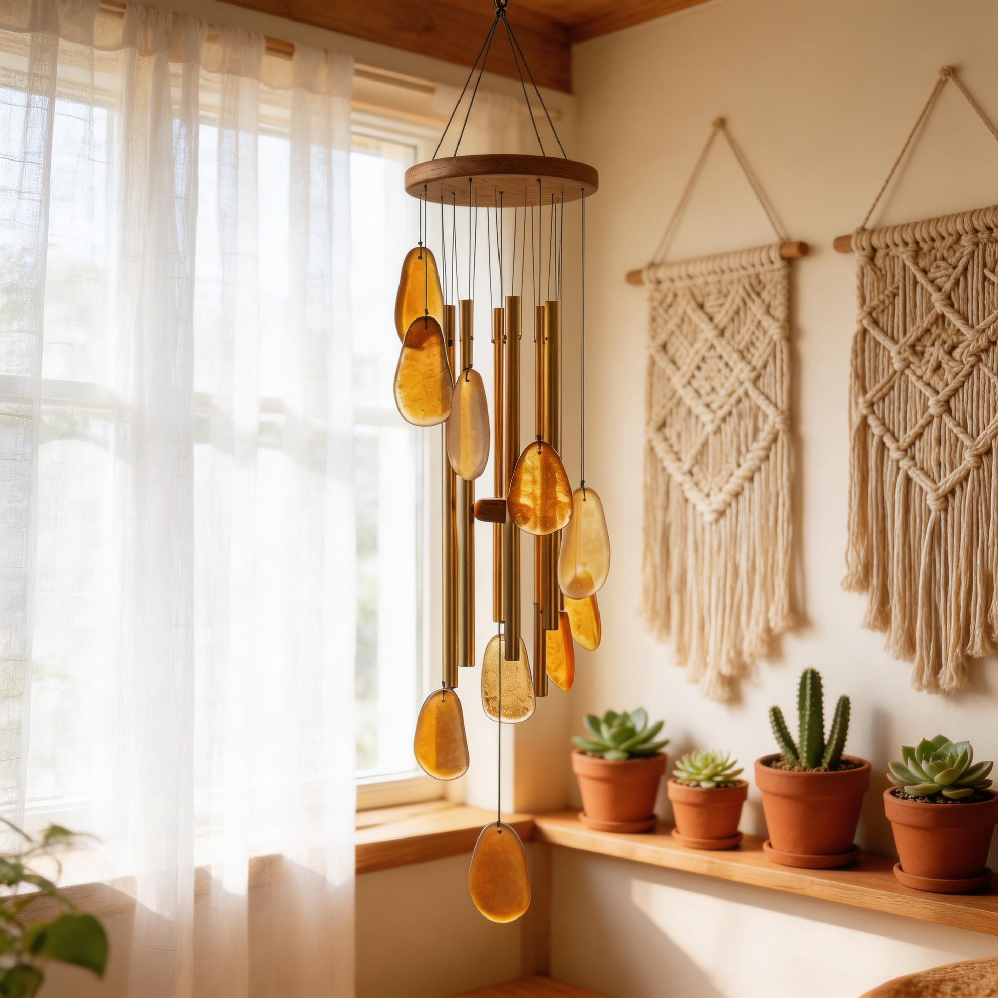 Modern Amber Wind Chime – A Gentle Symphony of Light & Sound